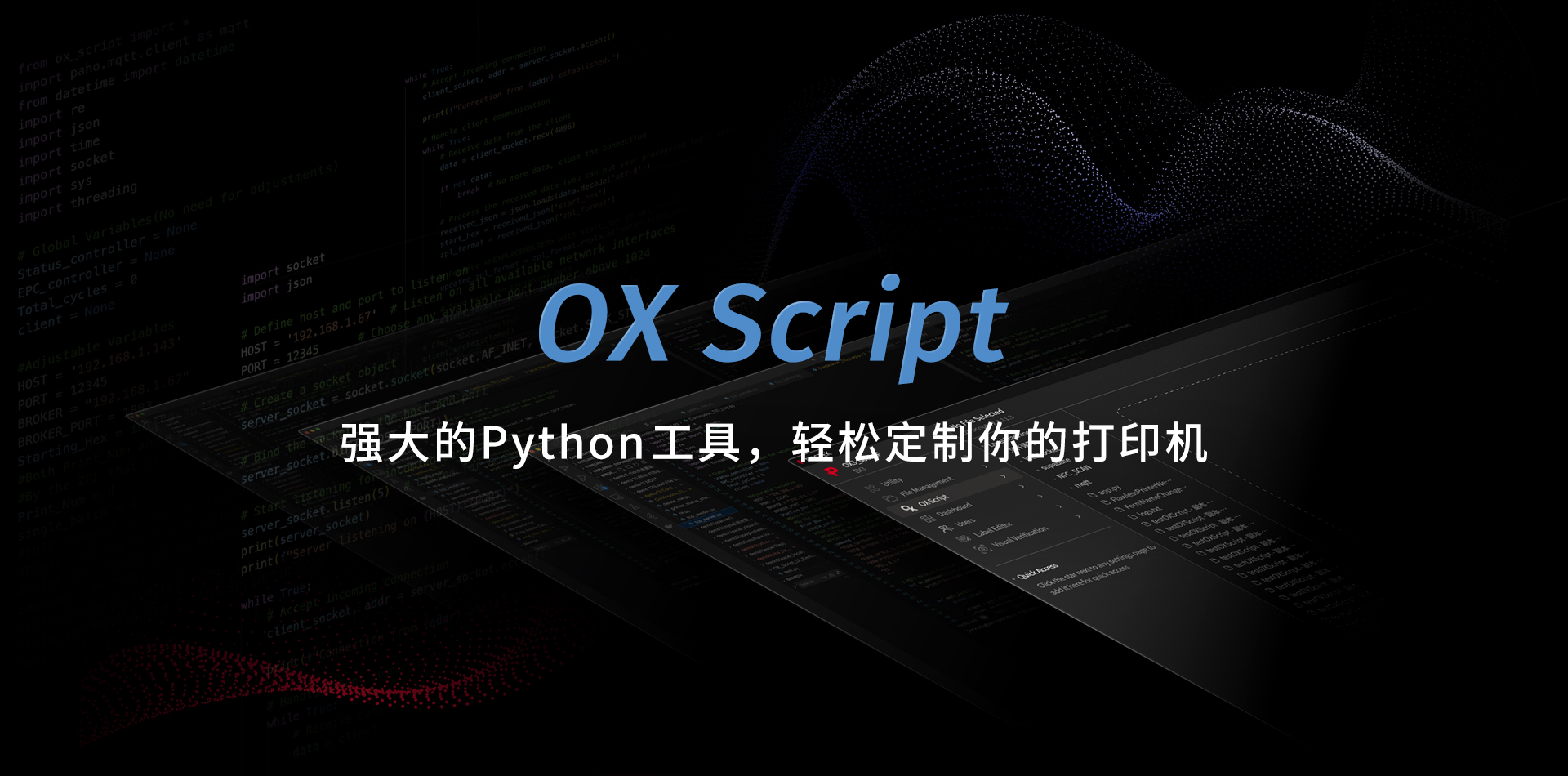 OX Script是一款基于Python脚本语言的OX平台打印机应用开发工具,它为自定义、交互式用户界面的构建提供强大工具,用户可根据打印需求自由发挥,通过一个脚本即可进行标签设计,实时可视化的预览标签样式,为未来标签自动化设计及打印树立标准。